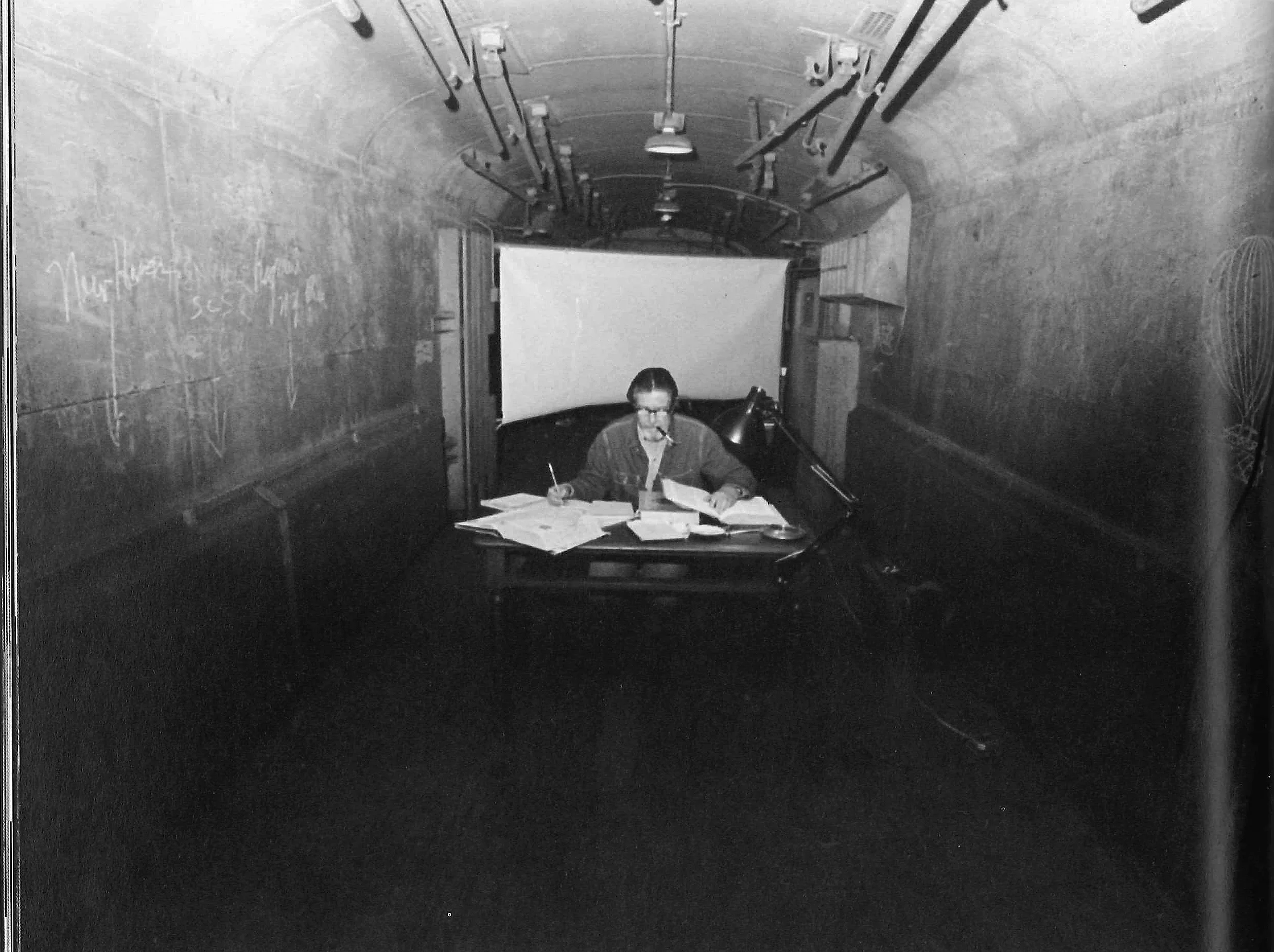 john cage performs in a baggage car